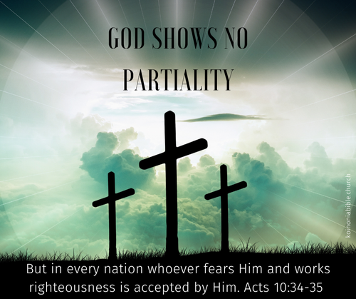 “I most certainly understand now that God is not one to show partiality, 35 but in every nation the man who fears Him and does what is right is welcome to Him." (Acts 10:34-35)
